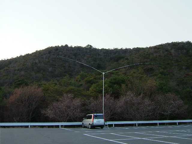 今回は高台からのQRVです。3.5/10MHzは7m長Whip、7MHzはG5RVのアンテナを使用しました。前回の川辺からの飛びと明らかに差を感じさせるG5RVアンテナでした。