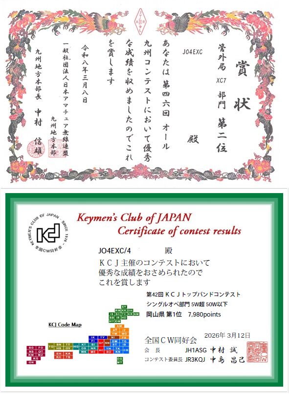 ALL JA0 3.5MHz & 7MHzコンテスト、オールJA4コンテスト 2026