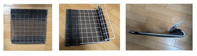 材料:「滑り止めシート(200円程度)」、「ダイソー・べんりベルト4本入り(110円)」、「ダイソー・PEワイヤーネット 44×29.5cm(110円)」