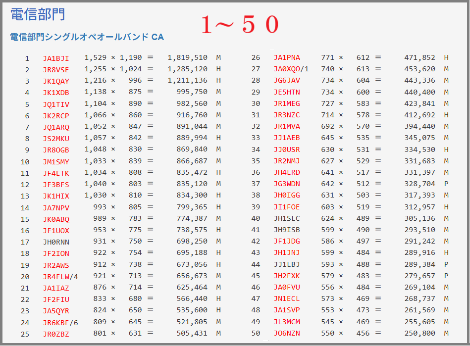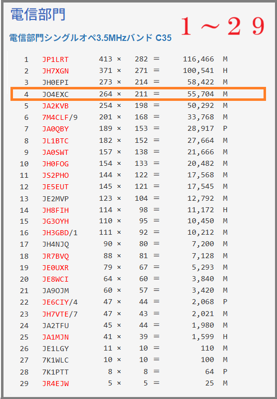 C35部門で入賞しました。関係各位ならびに交信いただいた各局さん有難うございました。